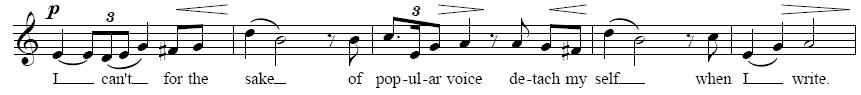 The first bar contains the motive I use to build the long line that, “scales my throat and parch(es) my voice”.