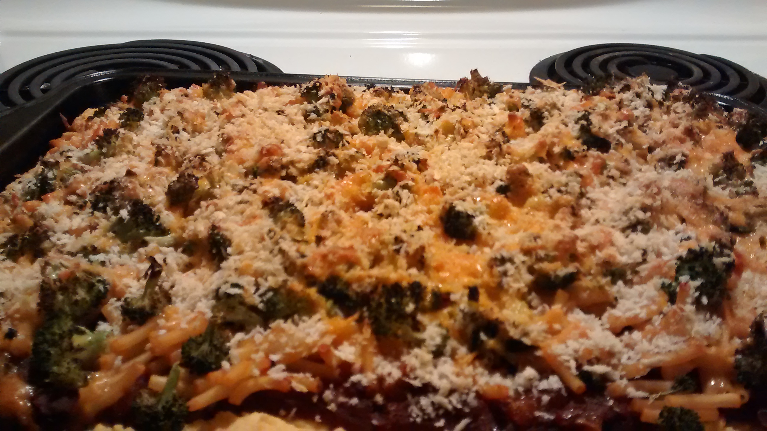 In retrospect, I would probably go instead with some kind of Béchamel sauce instead of tomato. Also, I could have done without the Panko and gone instead with some Parmesan cheese. It’d be a more harmonious set of flavors instead of a stampeding melee.