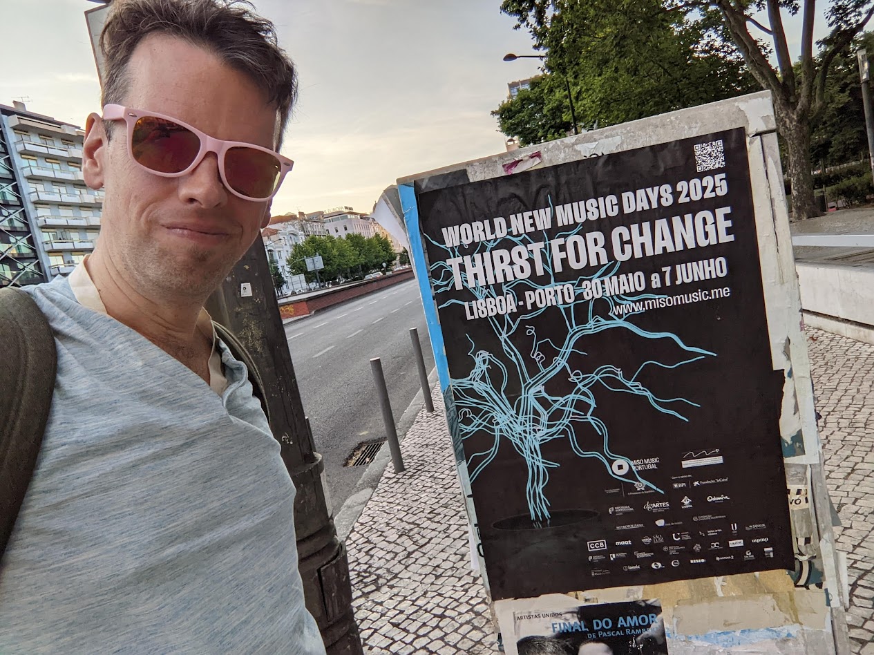 I was invited to attend this year for a performance of my piece, “Alouette Meets Her Maker” by the Lisbon University Youth Choir. To say I was blown away is an understatement. The choir is amazing. They begin their work on new music on-book, as a choir normally does. But they are working towards getting OFF-book, as a choir normally doesn’t. Once the group has memorized the music, they stage it. They add choreography. With my music, this meant that the choir was arranged in a V-shape on stage, simulating the piece’s titular flying space vehicle. They performed in the dark, with lights blinking erratically on the wings. When Alouette enters her death throes at the end of the piece, the treble singers would through themselves into the ground and slowly rise up, as if the satellite was desperately clawing her way out of death, only for the whole choir to pitch over at the end, decimated.